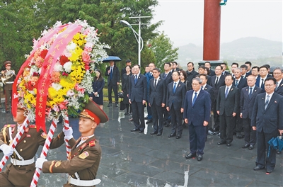 朝鲜内阁副总理郑明秀陪同凭吊。中国代表团全体成员及中国驻朝鲜使馆馆员等约100人参加凭吊活动。